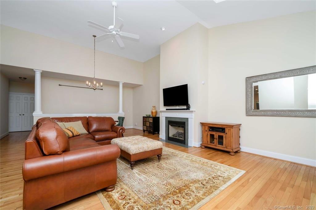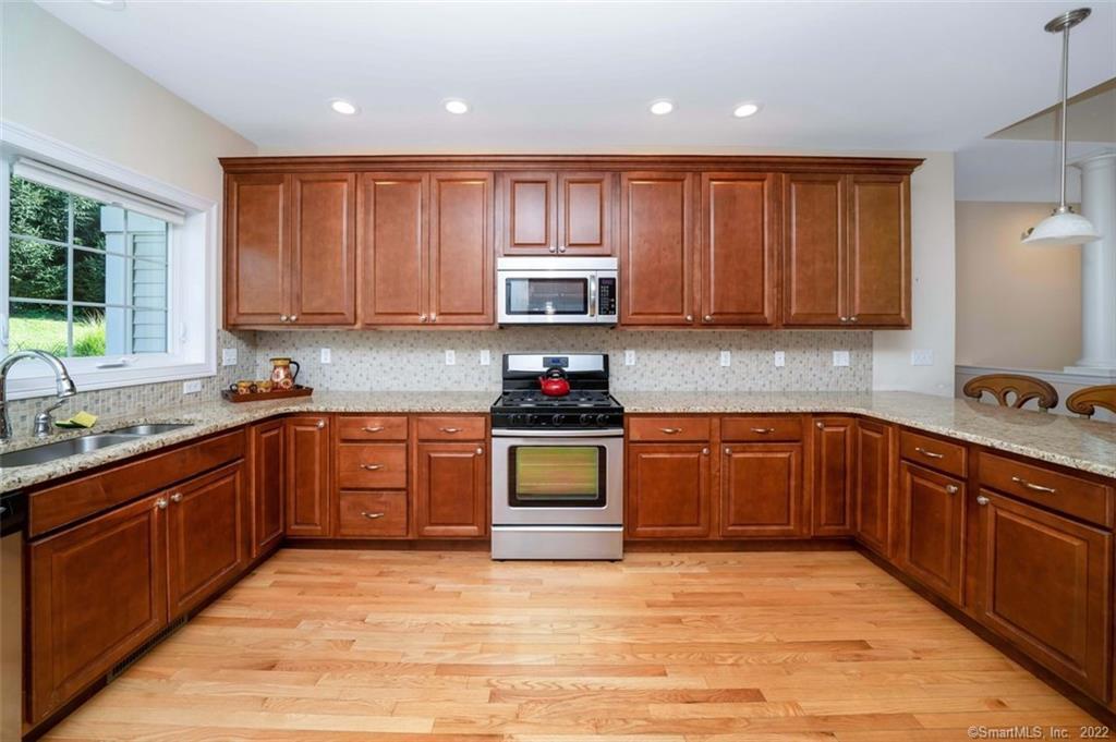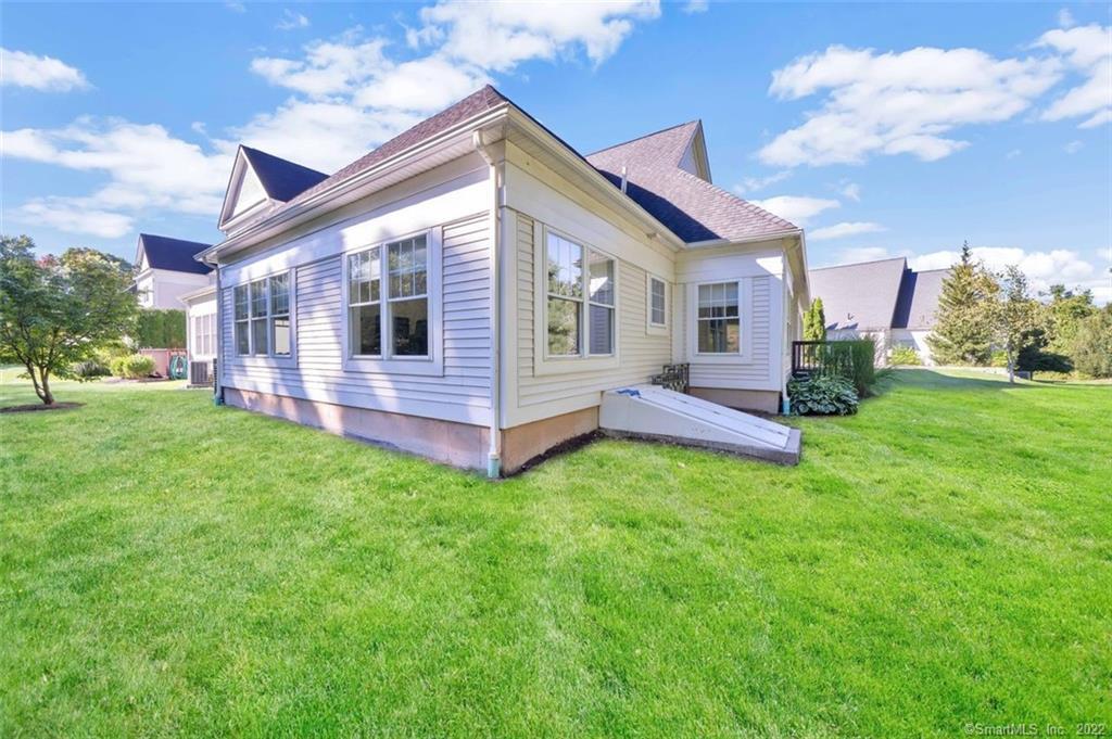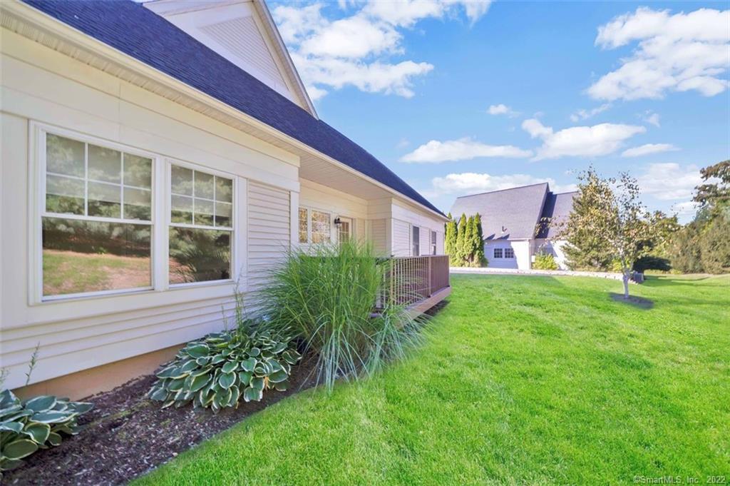 FABULOUS 3 bedroom end unit RANCH located in the most private location at the end of the complex. This spectacular home is in the 55+ community in sought after Strawberry Fields Association! You won't feel 55+ in this stylish, architecturally stunning home. Distinctive hardwood flooring, granite counters, stainless appliances, and so many windows including skylights all create a casual elegance. Large entry leads into an open area that contains the living room w/fireplace, dining room and oversized kitchen conducive to entertaining family and friends. Large windows flank every wall in the home allowing natural light in every room. Very large primary bedroom ensuite boasts large windows, walkin closet, walkin shower and 2 sink vanity. There are 2 add'l large bedrooms with a hallway full bath and large dedicated laundry/utility room that add to the feeling of spaciousness that has nothing to do with downsizing! The lower level is plenty of space to add a finished basement area and tons of storage. Two car attached garage adds more convenient storage space. Walking trails for you and your dog are at the end driveway at the Major Michael Donnelly Land Preserve that abuts this lovely community. Community space for all to use with a library and large gathering room is located in a lovely red barn at the entrance to the complex. SELLERS REQUEST HIGHEST & BEST OFFERS DUE MONDAY, OCT 3, AT 5PM